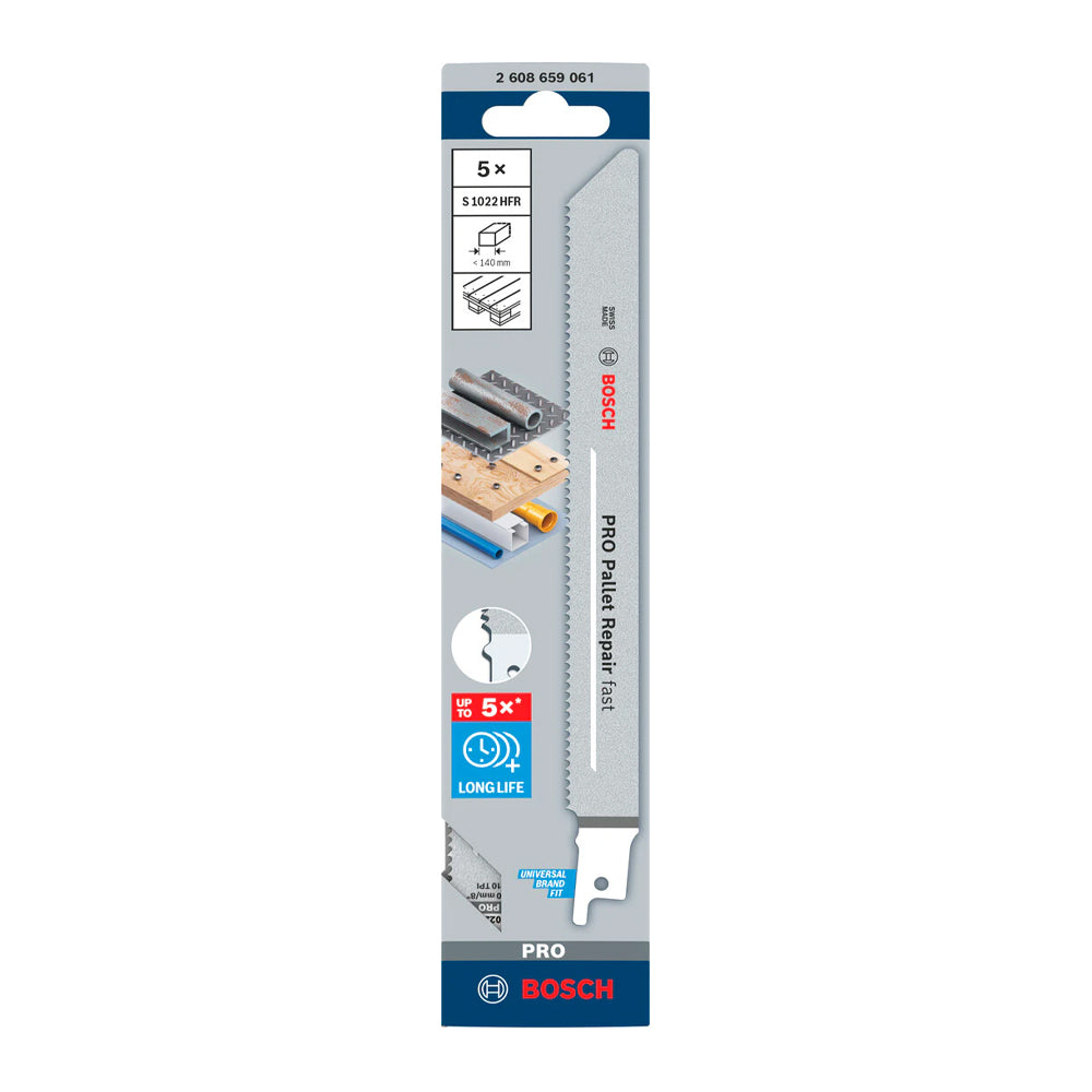 - Lasts up to 5x longer than a Bosch S1122BF Blade