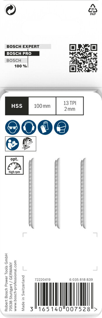 The PRO Plastics PC clean T101A Jigsaw Blade is a great choice for trade professionals who need to cut thermoplastic materials, like PC (polycarbonate). We made it from high-carbon steel (HCS) and gave it a tapered body and fine-pitched ground teeth to ensure you get clean cuts without melting the plastic. Use it to cut PC sheets between 2 and 20 mm thick.