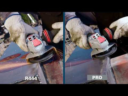 The PRO R574 uses self-sharpening zirconia grits and a tough, stable vulcanised backing. Each disc offers high efficiency: it will grind flat surfaces the flap disc can't.