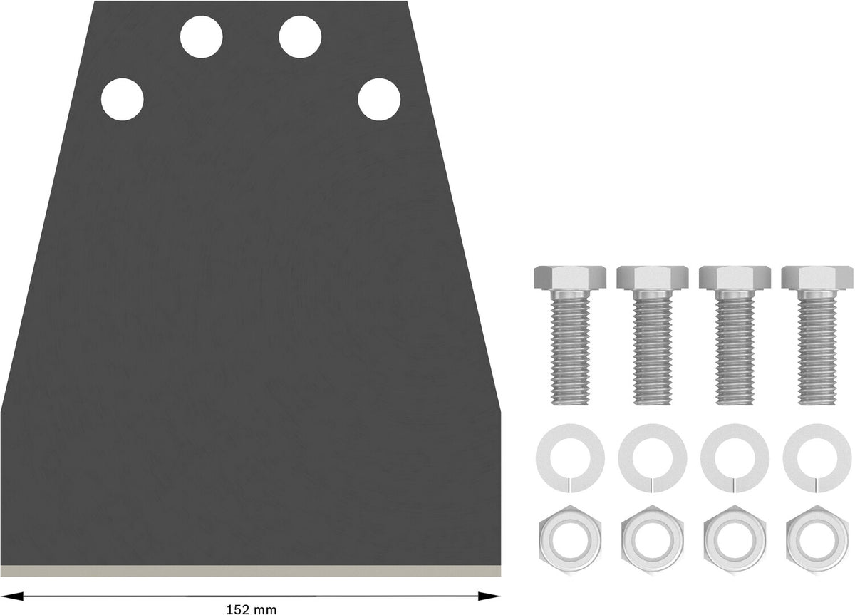 - Replacement set including 1 blade, 4 bolts, 4 nuts, 4 washers