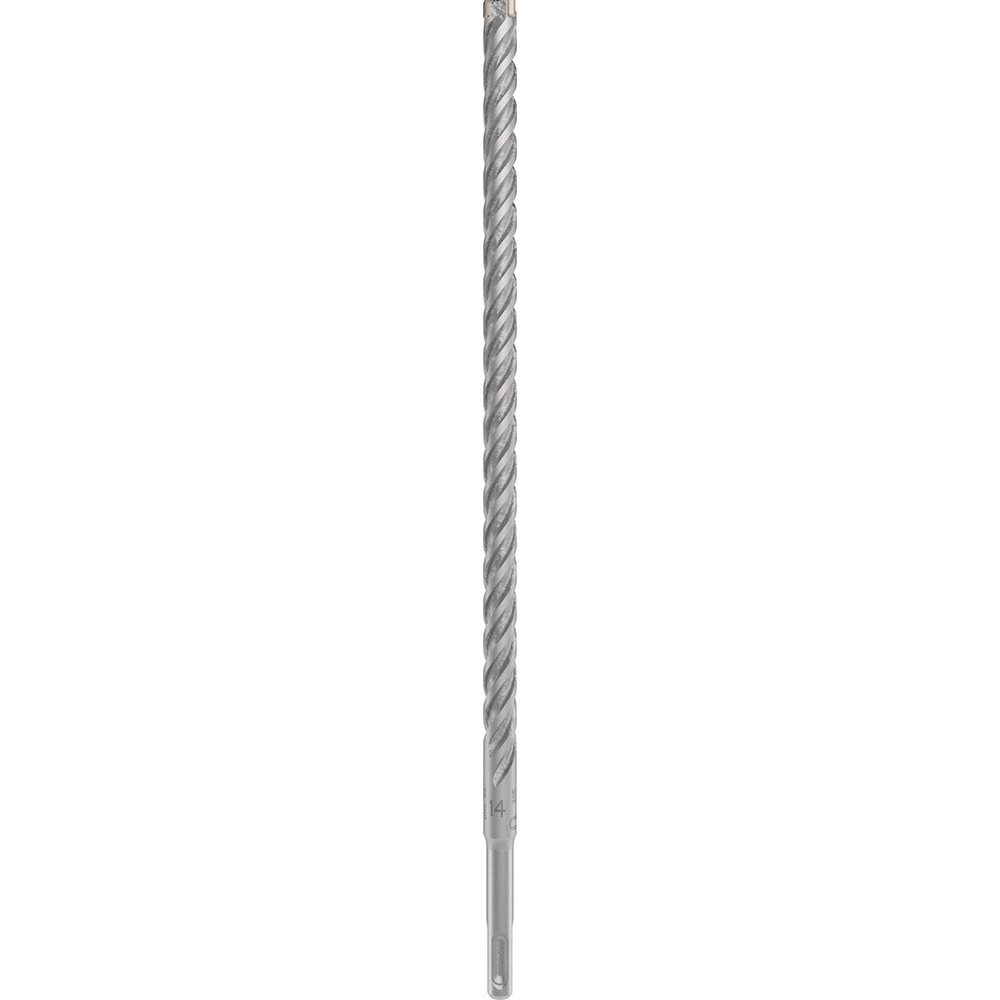 Made from an embedded cross of high-quality tungsten carbide, the PRO SDS plus-5X's 4-cutter head offers convenience to professionals who need to drill accurate holes in reinforced concrete. The masonry drill bit has 4 flutes channeling the dust away from the impact point and ensuring effective and long-lasting performance.