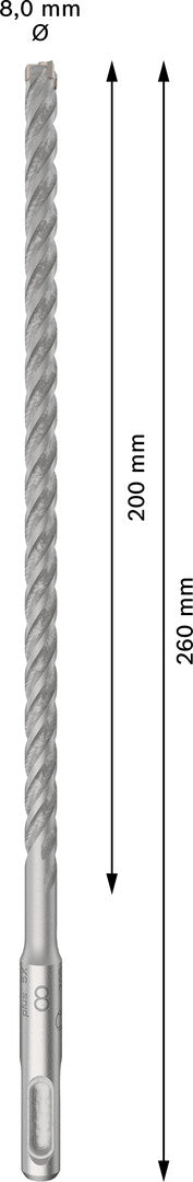 Made from an embedded cross of high-quality tungsten carbide, the PRO SDS plus-5X's 4-cutter head offers convenience to professionals who need to drill accurate holes in reinforced concrete. The masonry drill bit has 4 flutes channeling the dust away from the impact point and ensuring effective and long-lasting performance.