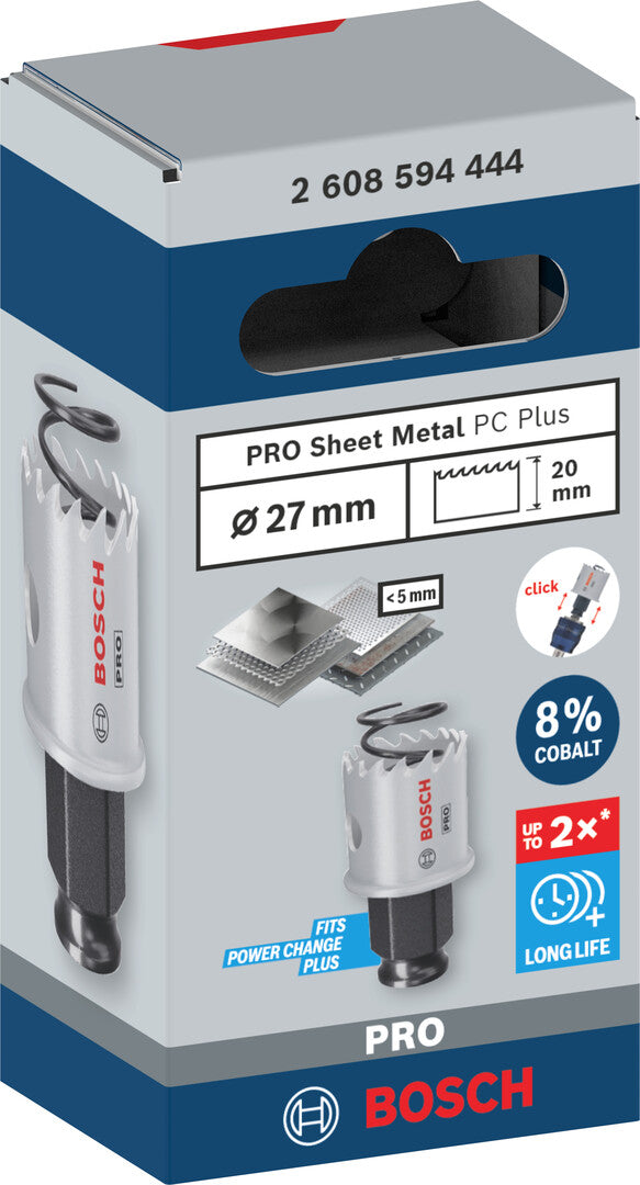 We made the PRO Sheet Metal Hole Saw for professionals who need to cut metal. Its teeth are made from HSS with 8% cobalt, which makes them sharp and durable. It has a hardwearing body and a handy ejection spring helping you remove material plugs with ease.
