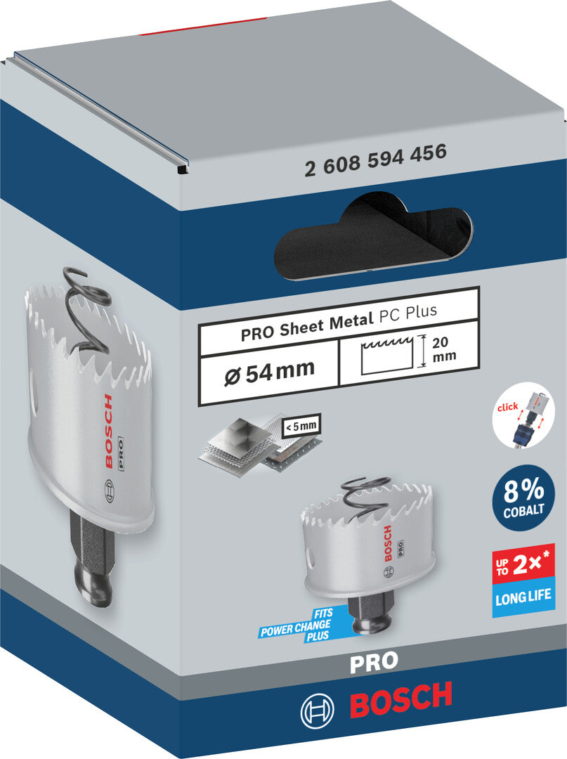 We made the PRO Sheet Metal Hole Saw for professionals who need to cut metal. Its teeth are made from HSS with 8% cobalt, which makes them sharp and durable. It has a hardwearing body and a handy ejection spring helping you remove material plugs with ease.