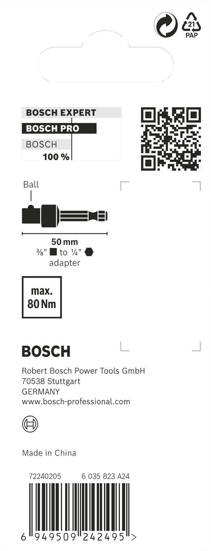 The PRO Socket Adapter allows you to tighten and remove fasteners, such as bolts and nuts, using your drill or impact driver. It features a square drive which accepts square impact sockets. The square drive features ball or pin connection, which makes connecting and removing sockets easier. Only suitable for applications below 80 Nm. For heavier applications, such as wheel changing, we recommend using sockets directly with an impact wrench.