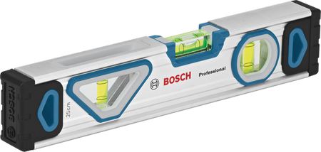 The magnetic 25cm level comes with block vials, shock-resistant end caps, and a solid aluminium body that withstand high stress and ensure a long service life at the jobsite. The anti-slip end-caps help to avoid any discrepancy in the reading and deliver additional stability during the task. The level is provided with magnified center vials, UV-resistant vial liquid, and metal vial rings that allow a precise and long-lasting visibility. Moreover, its unique front-view vial guarantees easy readability from multiple positions. , The 25cm level is magnetic and can be easily attached to metal surfaces.
