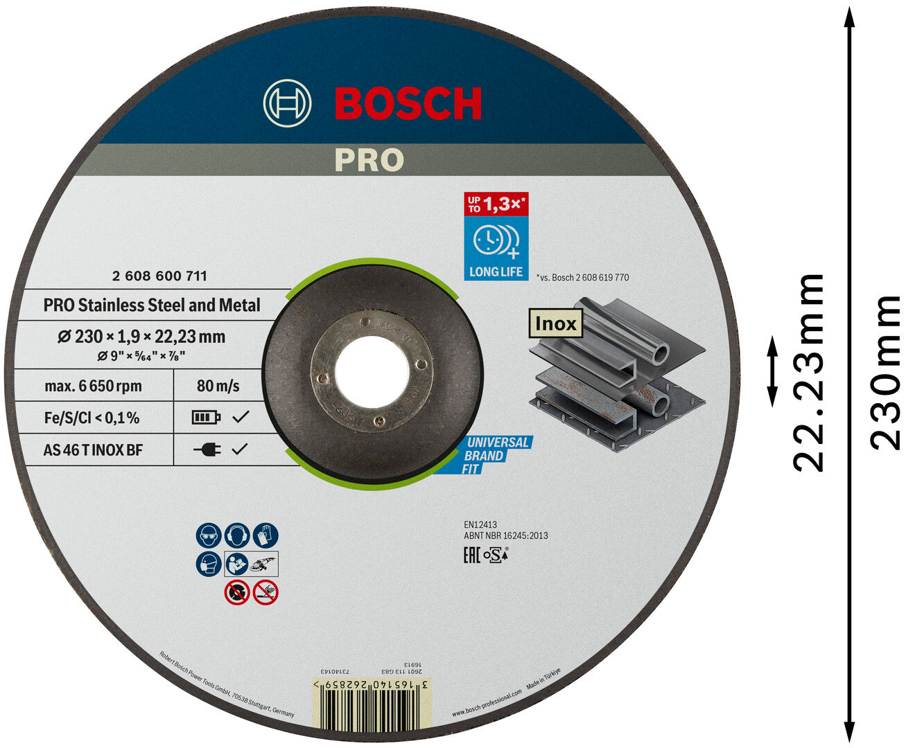 - Lasts up to 1.3x longer than a Bosch Standard for Metal Disc (2608619769)