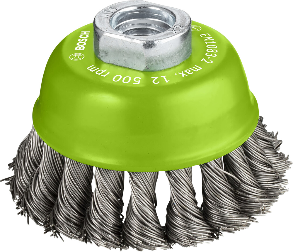 The PRO Stainless Steel heavy Cup Brush is durable addition to any metal shop where you need to remove welded seams, heavy rust, old paint, varnish, and underseal from stainless steel and non-ferrous metal surfaces. We fitted the cup brush with premium knotted wire to ensure you can use it for heavy-duty cleaning jobs – time and again. Use the cup brushes with thicker wire for fast, coarse finish, and the ones with thinner wire to get a smoother surface.