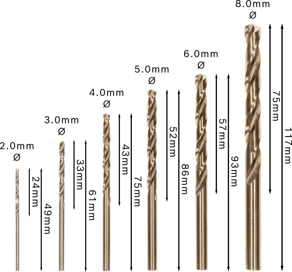- For drilling in steel and stainless steel, eg when pre-drilling profiles and beams for anchors, rivets, threads, and fixtures