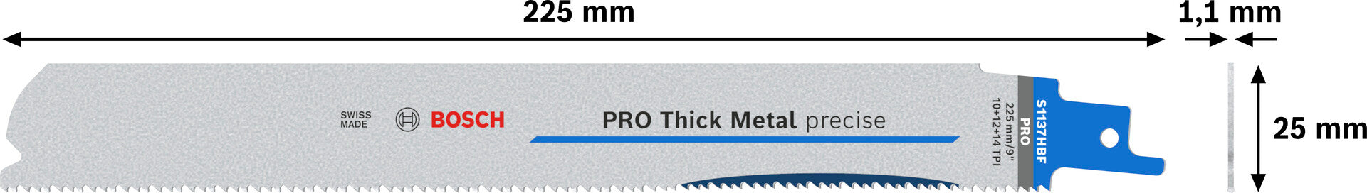 Offering both long life and a neat cut, the PRO Thick Metal precise S1137HBF is an advanced Bi-Metal design, with a HSS strip forming the curved teeth. Added to the thick carbon steel body, this is a great blade for seeking a quality, accurate cut in thick metal.