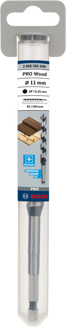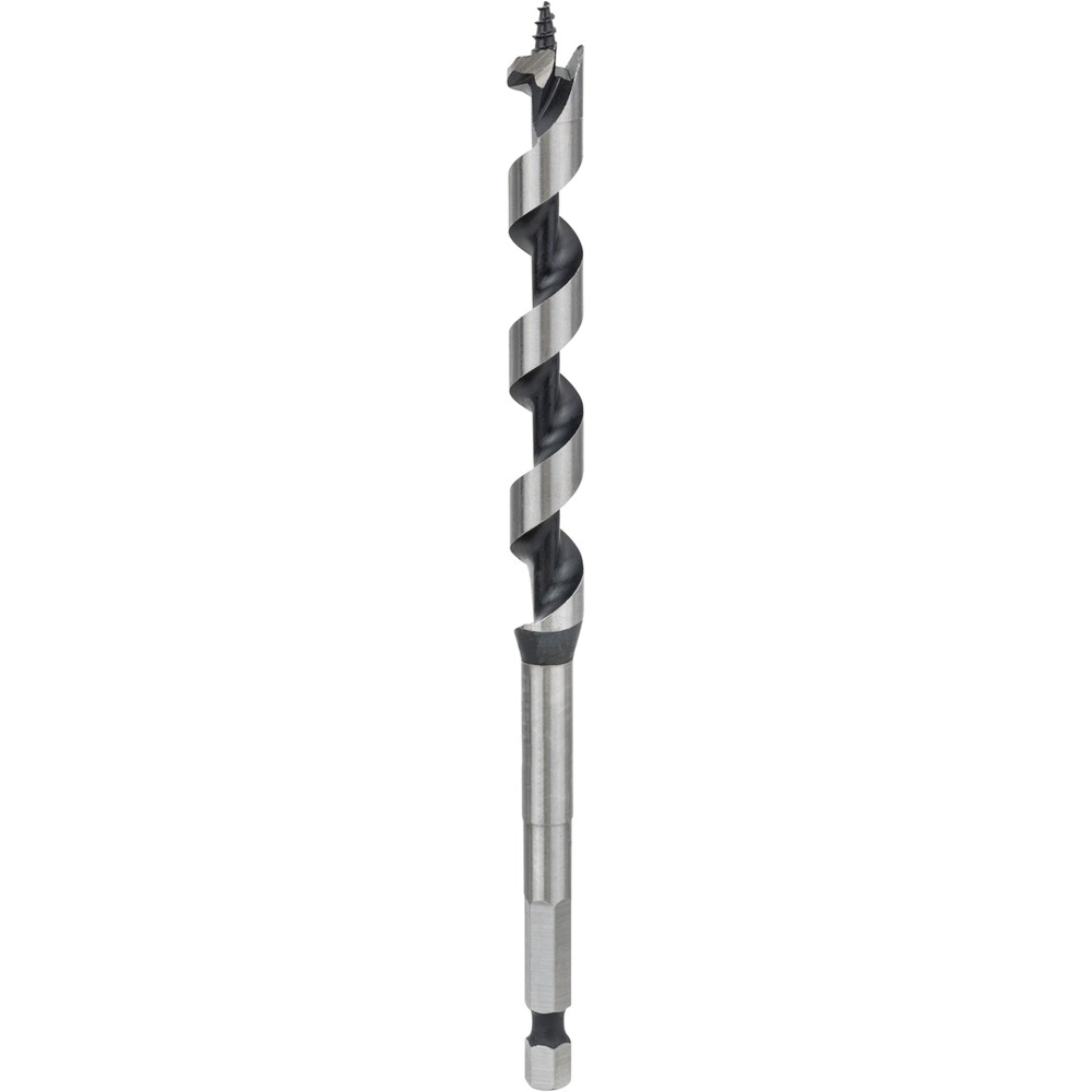 The PRO Auger bit is a great choice for carpenters and woodworkers who need a fast and precise accessory to drill deep holes in hardwood and softwood. The bit has a strong screw tip that helps you start new holes precisely where you need them. The tip draws the auger bit into your workpiece, so you can drill with ease. Its main cutting edge is ground for sharpness. The flute’s design ensures the chips are removed effectively, which means you get precise and dimensionally stable drilling.
