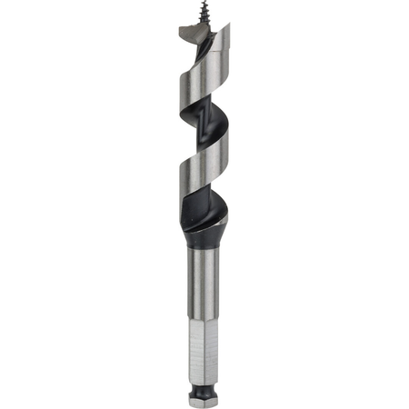 The PRO Auger bit is a great choice for carpenters and woodworkers who need a fast and precise accessory to drill deep holes in hardwood and softwood. The bit has a strong screw tip that helps you start new holes precisely where you need them. The tip draws the auger bit into your workpiece, so you can drill with ease. Its main cutting edge is ground for sharpness. The flute’s design ensures the chips are removed effectively, which means you get precise and dimensionally stable drilling.