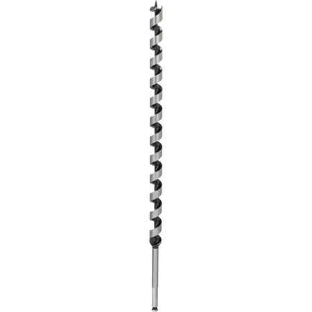 The PRO Auger bit is a great choice for carpenters and woodworkers who need a fast and precise accessory to drill deep holes in hardwood and softwood. The bit has a strong screw tip that helps you start new holes precisely where you need them. The tip draws the auger bit into your workpiece, so you can drill with ease. Its main cutting edge is ground for sharpness. The flute’s design ensures the chips are removed effectively, which means you get precise and dimensionally stable drilling.