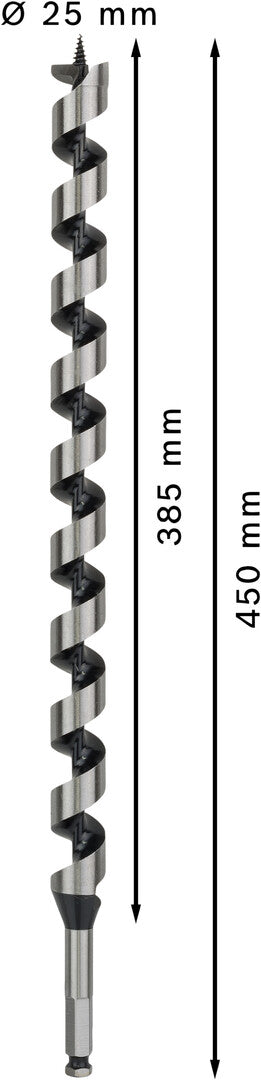 The PRO Auger bit is a great choice for carpenters and woodworkers who need a fast and precise accessory to drill deep holes in hardwood and softwood. The bit has a strong screw tip that helps you start new holes precisely where you need them. The tip draws the auger bit into your workpiece, so you can drill with ease. Its main cutting edge is ground for sharpness. The flute’s design ensures the chips are removed effectively, which means you get precise and dimensionally stable drilling.