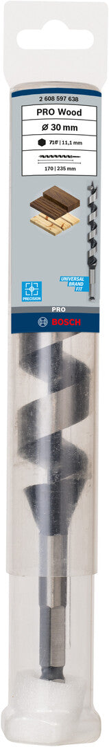 The PRO Auger bit is a great choice for carpenters and woodworkers who need a fast and precise accessory to drill deep holes in hardwood and softwood. The bit has a strong screw tip that helps you start new holes precisely where you need them. The tip draws the auger bit into your workpiece, so you can drill with ease. Its main cutting edge is ground for sharpness. The flute’s design ensures the chips are removed effectively, which means you get precise and dimensionally stable drilling.