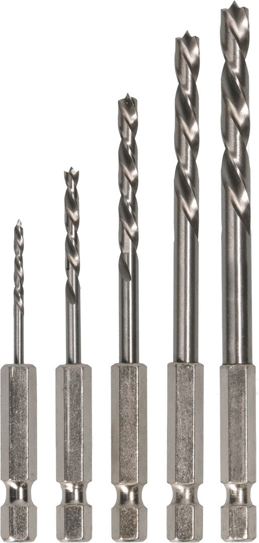 The PRO Wood HSS Brad Point Drill Bits bring solution to your woodworking challenges. We made them from high-speed steel (HSS), which means they are hard-wearing and resistant to heat. Their centering tip, or Brad Point, ensures you can start holes precisely where you need them. The holes are round and splinter-free due to sharp cutting spurs at the tip of the drill bit. The two-flute design helps remove chips and prevents them from clogging the holes, make your drilling fast and efficient.