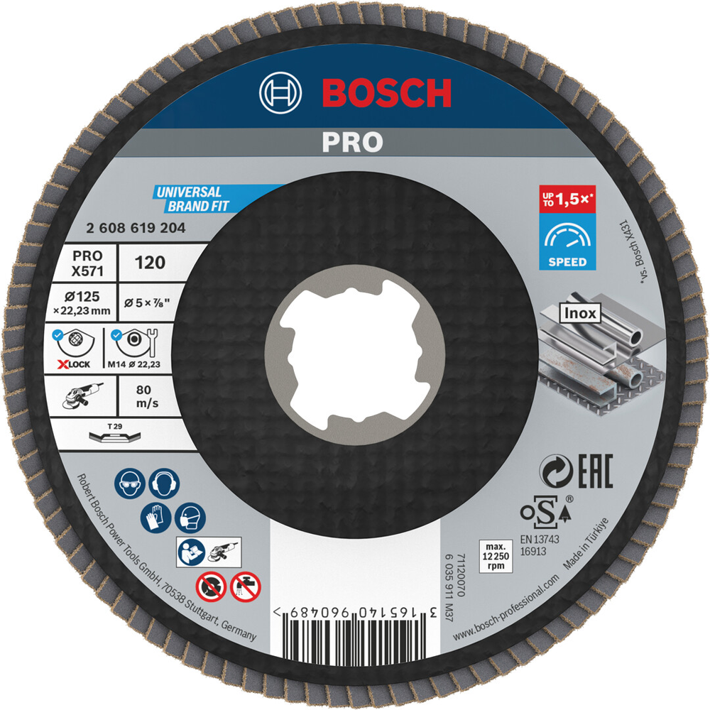 The PRO X571 Flap Disc has an X-cloth backing for stable grinding. The advanced grain fusion of aluminium oxide and zirconia offers fast stock removal even in hardened steel.