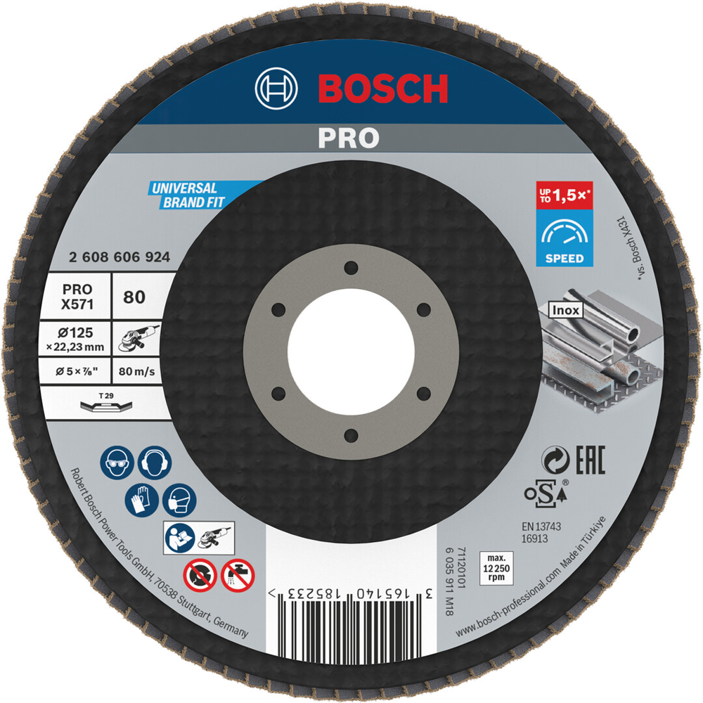 The PRO X571 Flap Disc has an X-cloth backing for stable grinding. The advanced grain fusion of aluminium oxide and zirconia offers fast stock removal and makes this flap wheel efficient, even when you use it on hardened steel.