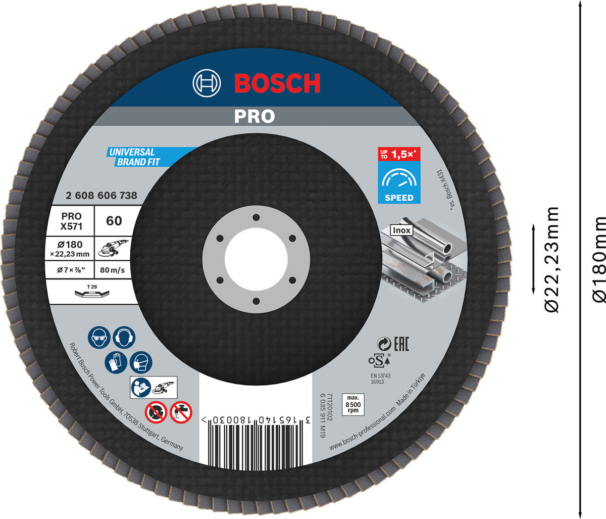 - Up to 1.5x faster than a Bosch X431 Flap Disc