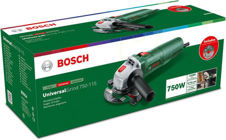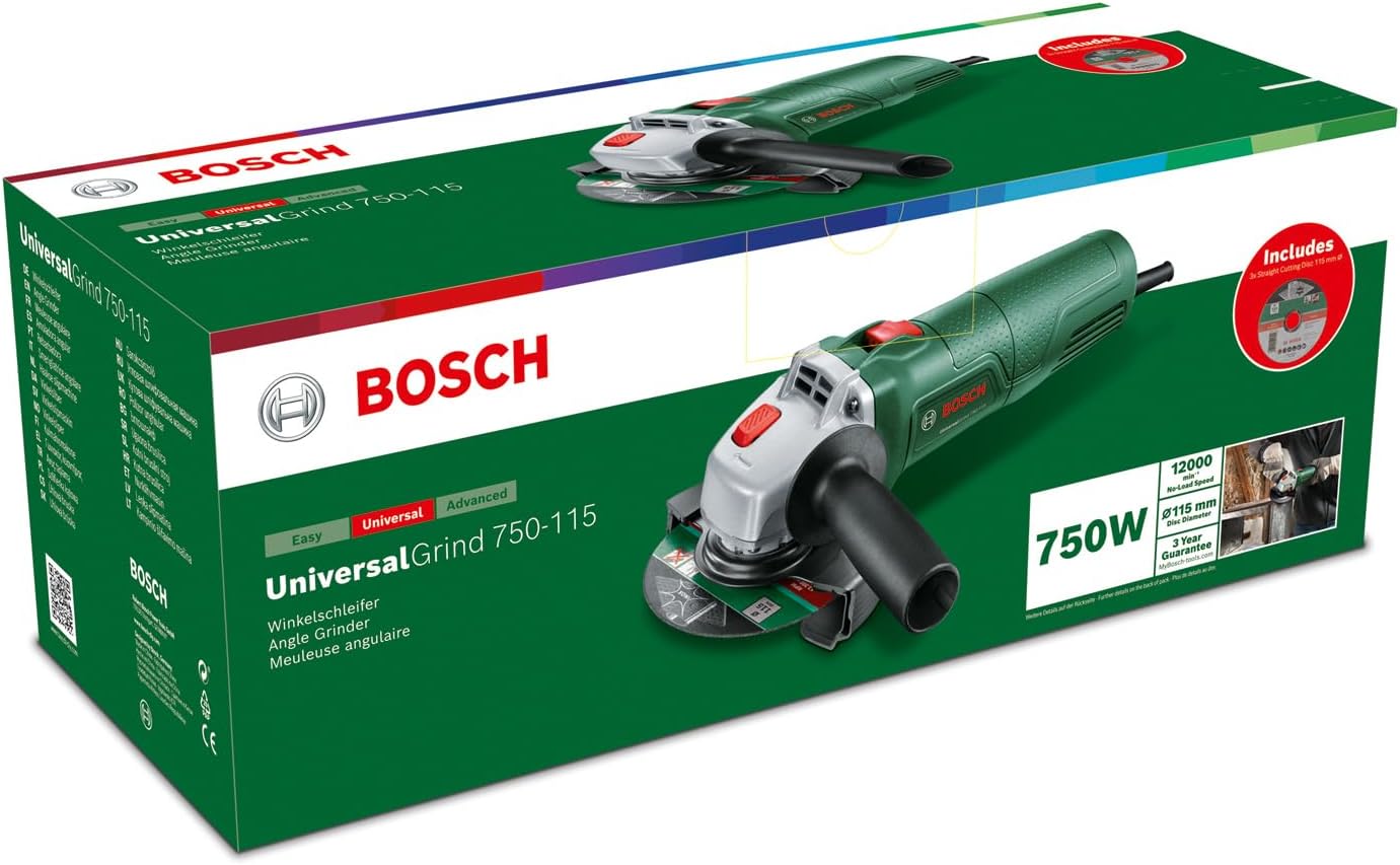 Bosch UniversalGrind 750-115 Angle Grinder 240V (750 W; 3X Straight Cutting Discs; for Grinding, Cutting, Brushing and Sanding) 06033E2071