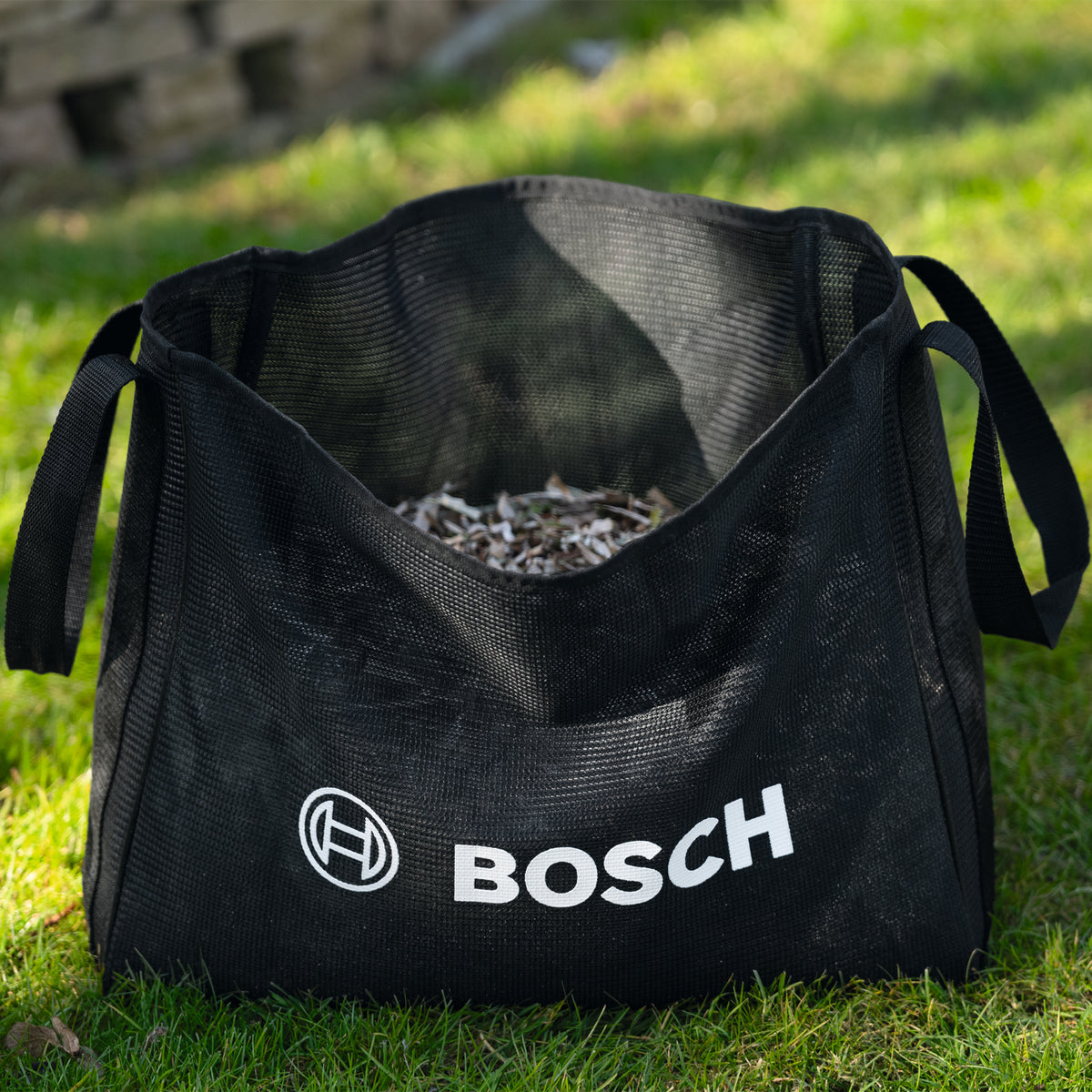 - Collection bag. High-quality 28l fabric bag for collecting garden mulch.
