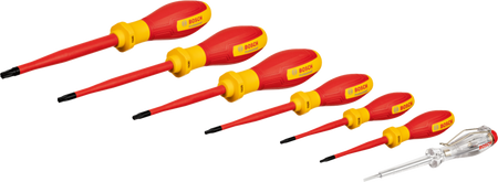 - Precise and durable: Set of 6 VDE screwdrivers TX10 / TX15/ TX20 / TX25 / TX30 / TX40 and 1 single-pole phase tester SL3