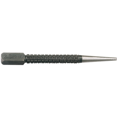 Square section striking head with knurled body and polished end. Manufactured from carbon steel hardened and tempered.