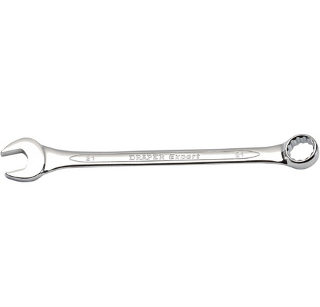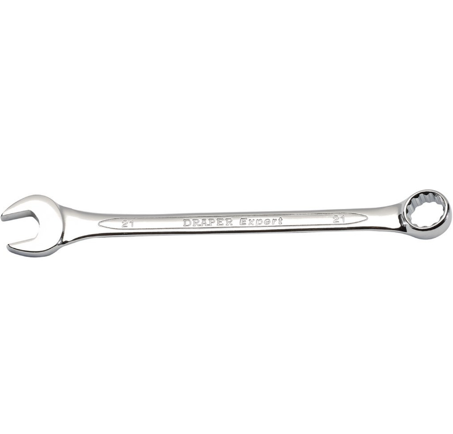 Forged from chrome vanadium steel, hardened, tempered, fully polished and chrome plated for corrosion protection. Polished Draper HI-TORQ® ring end offset at 15°. Jaw offset at 15°.