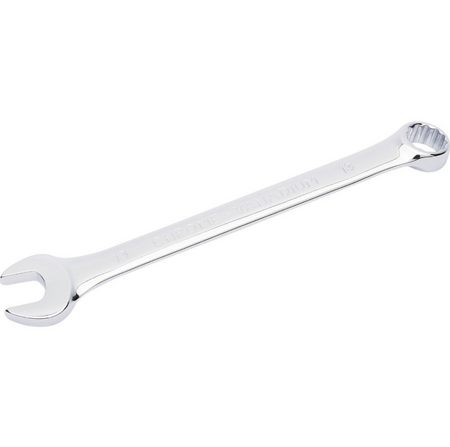 Forged from chrome vanadium steel, hardened, tempered, fully polished and chrome plated for corrosion protection. Polished Draper HI-TORQ® ring end offset at 15°. Jaw offset at 15°.