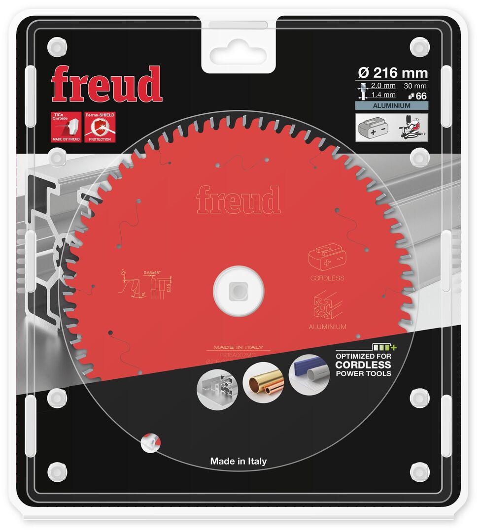 Maximised battery runtime of your cordless saw due to special thin-kerf tooth design. Made for miter saws, ideal for cutting aluminium, copper, brass and plastics. A specially formulated, highly compact Titanium Cobalt Carbide (TiCo), engineered and manufactured by freud. It provides a sharper edge and flawless finish with a dramatically longer cutting life. Perma shield technology is a non-stick coating formulation that withstands the toughest applications. It provides thermal insulation, protects from corrosion and eliminates resin build-up, reducing downtime for cleaning.
