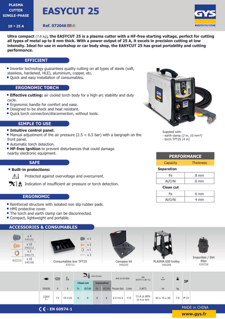 GYS EasyCut 25 - 25A Plasma Cutter 072046