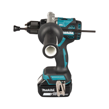 An efficient, brushless drill for screwdriving and drilling. A powerful max. torque of 141Nm. The main feature and benefits are: Redesigned speed change mechanism to avoid gear disengagement, Controller protection has been revised to enhance the protection for electronic components during variable speed control by the trigger. Battery is not included with this item.