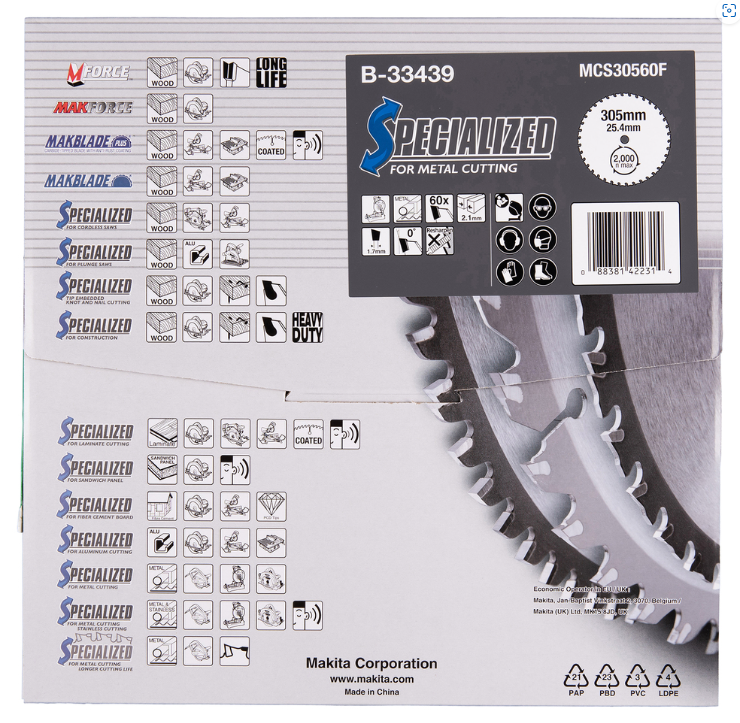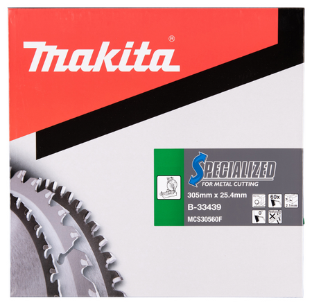 SPECIALIZED saw blade with 305mm diameter for cutting metal. The blade has 60 tungsten carbide tipped teeth, a kerf of 2.1mm and hole diameter of 25.4mm. Suitable for cutting mild steel, steel plates, metals, iron pipes and profiles.