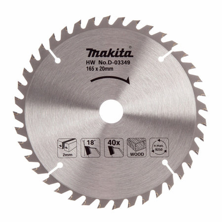 The Makita D-03349 is a Standard Blade for a Portable Saw. It has a Diameter of 165mm with a tooth count of 40, suited to slower cutting wiith a finer finish.