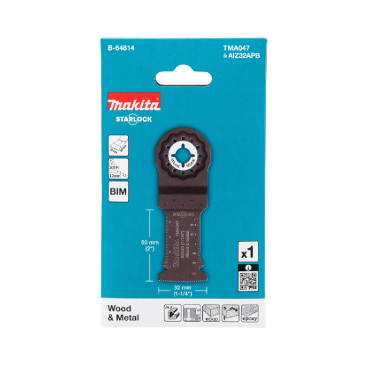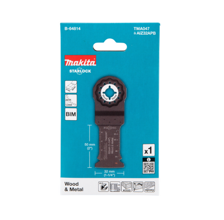 STARLOCK multitool blade specially designed for sawing materials such as aluminium, wood, epoxy and plaster board. This Bi-metal blade has a width of 32 mm and a working length of 50 mm. Blade has 20 TPI. Pack contains 1 blade.
