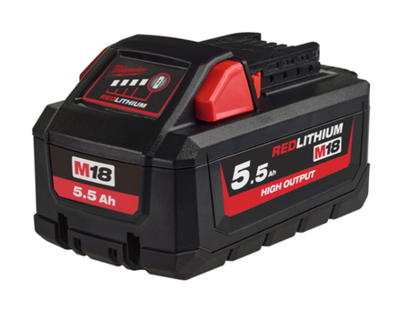 The new M18™ 5.5 Ah HIGH OUTPUT™ battery pack provides up to 50% more power vs M18™ REDLITHIUM™ battery packs