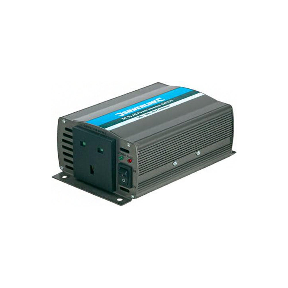 Converts 12V DC to 230V AC mains power; suitable for use in vehicles and boats. Includes overload, short circuit, and low battery protection. Features a universal socket compatible with UK and EU plugs.