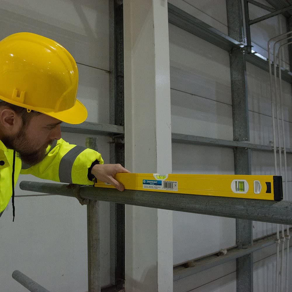 Extruded aluminium construction (1.1mm thick). Milled V-groove bottom face for accuracy and pipework applications. Ribbed sides, protective end caps and hanging hole. Highly visible, UV-resistant 45°, 90° and 180° vials. Accurate to 1mm/m.