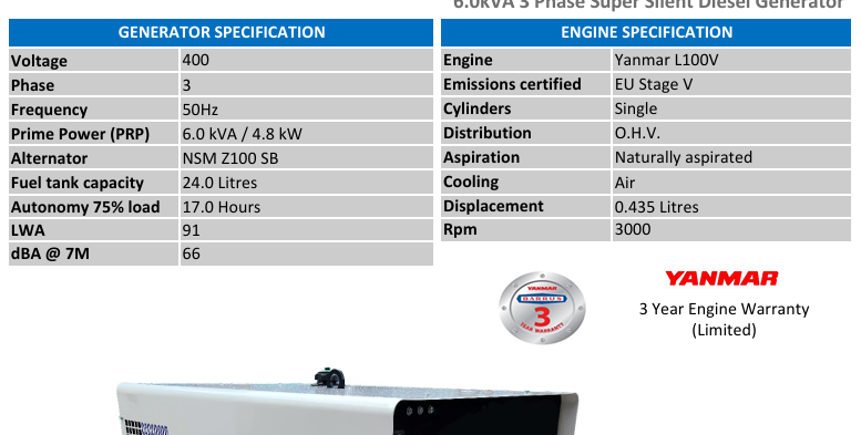 - Output: 6.0 kVA / 4.8 kW