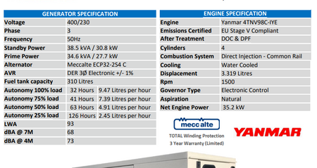 - Output: 38.5 kVA / 30.8 kW