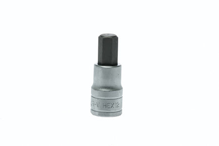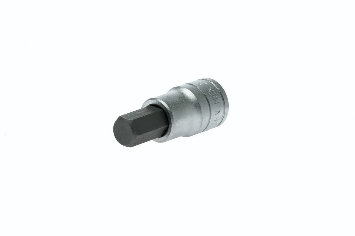 1/2" drive hex S2 socket bit made from chrome vanadium with a satin finish. DIN 7428
