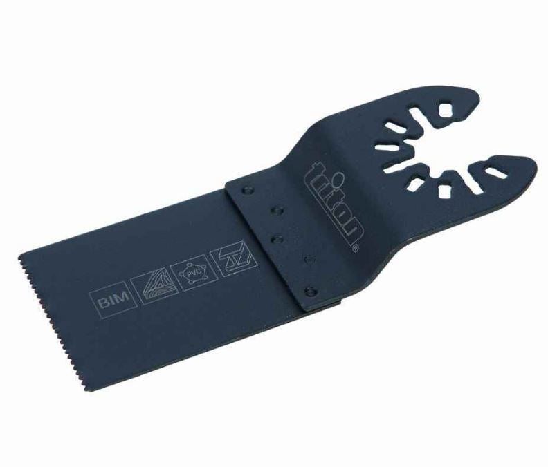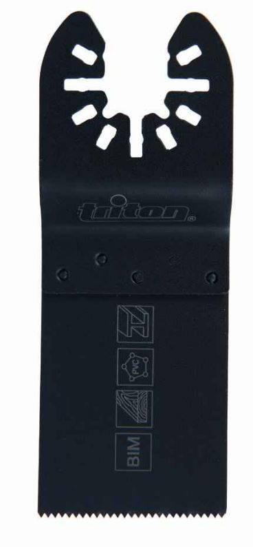 Triton 794764 Bi-Metal Plunge-Cut Saw Blade 32mm. Universal open-backed design for use on plasterboard, wood, plastic and metal profiles. Compatible with tool-free, quick-change and standard multi-tool machines. Also compatible with Triton, GMC and Silverline Oscillating Multi-Tools, and with most leading brands.
